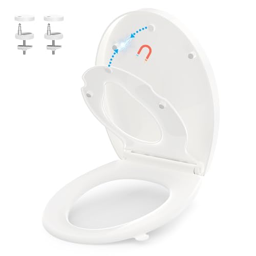 Premium Family Toilet Seat Urea Formaldehyde Soft Close Toilet Seat with Detachable Child Seat, Magnetic Toilet Lid with Quick Release and Adjustable Hinges, O Shape Toilet Seats for Toddlers Adults
