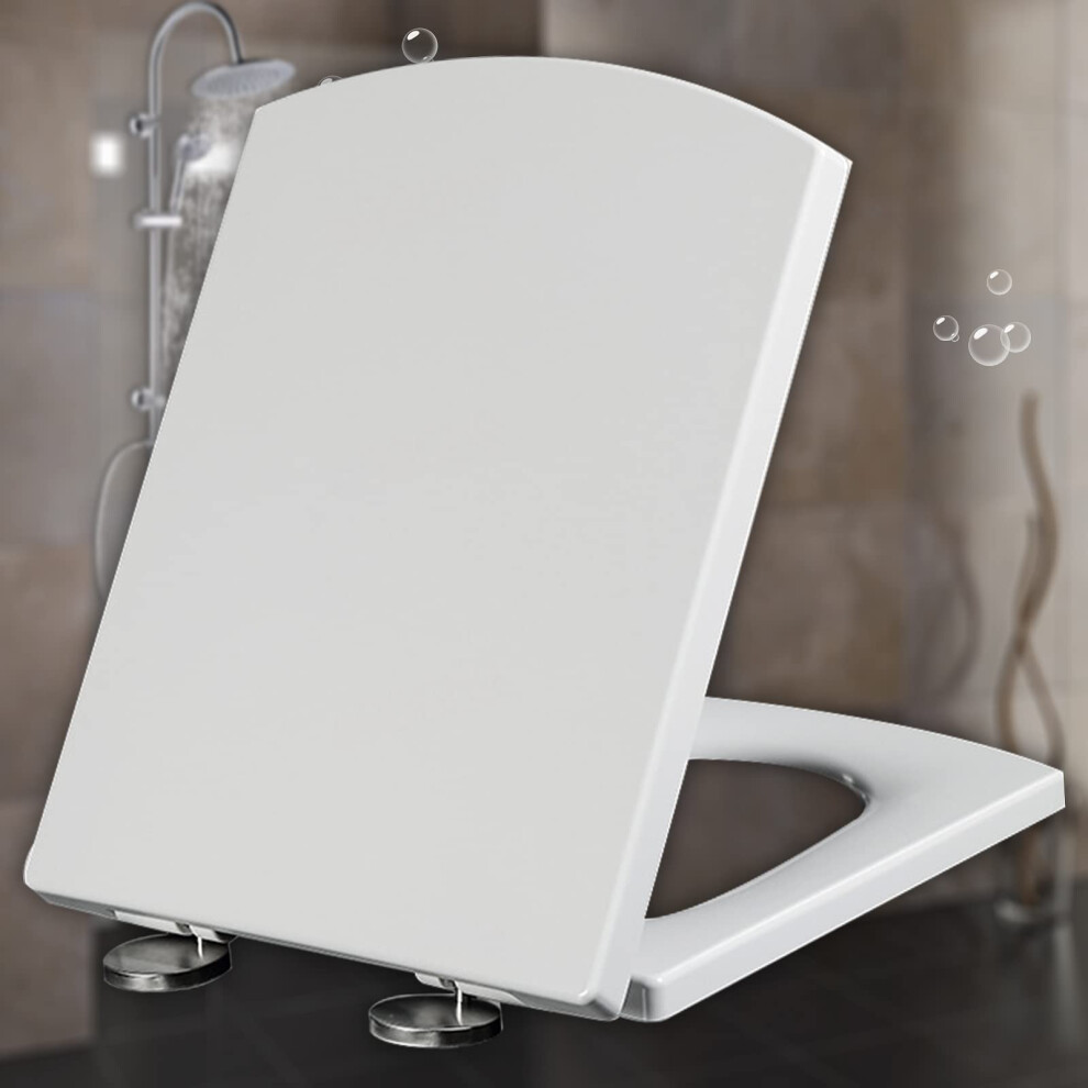 CUQOO Soft Close Toilet Seat - Premium Heavy Duty with Quick Release, Easy Installation with Two Top Fixing Options and Adjustable Hinges, All-in-One Family Comfort Toilet Seat