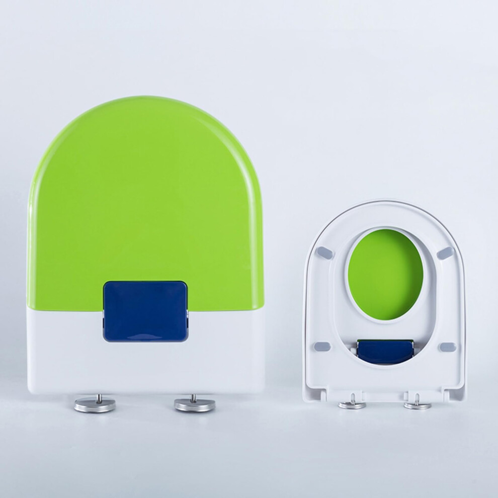 Family Toilet Seat with Built-In Child Seat, Soft Close, Quick Release, Adjustable Hinge, Anti-Slip U/D Shape, Green 36x45cm