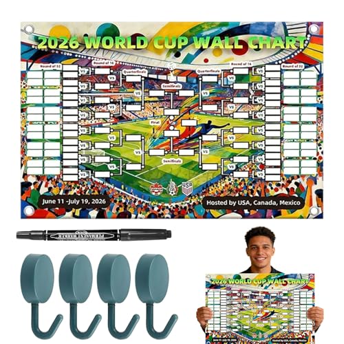 World Cup Football 2026 Wall Chart Kit 100x75cm Tournament Poster With Pen Hooks And 10m Ribbon Hanging Rope Track Fixtures Scores Teams Bracket Schedule Large Fan Display For Bedroom Gym Wall Display