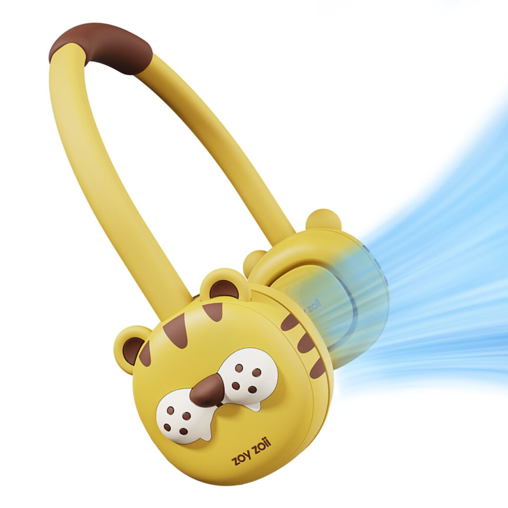 Neck Fan for Kids, Hands Free Bladeless Fan, Wearable Personal Fan, Rechargeable 3 Speeds Gift for Boy Girl Travel Outdoor, Tiger
