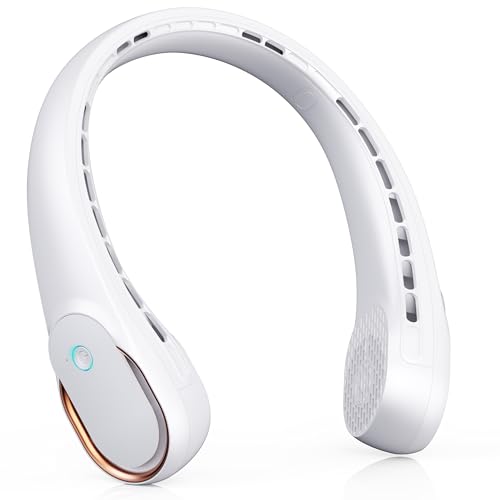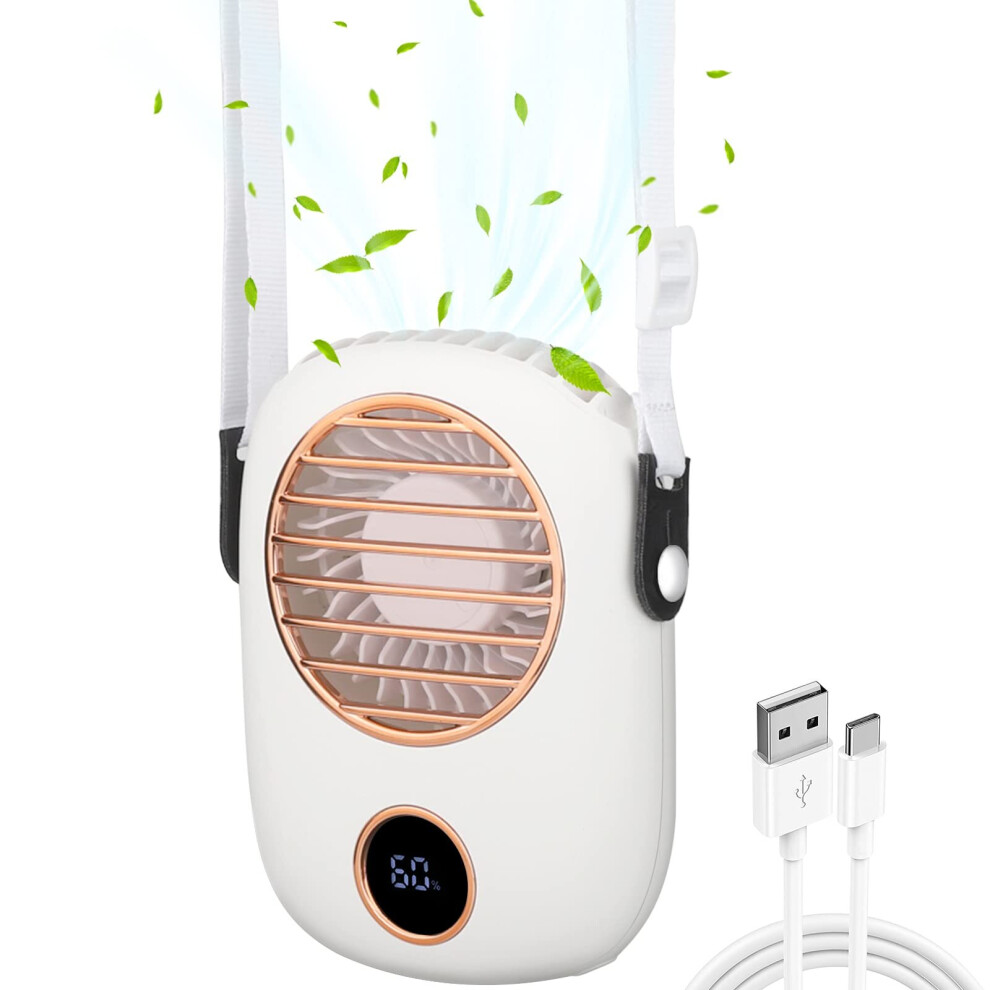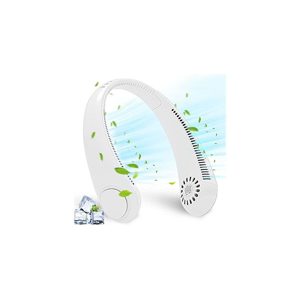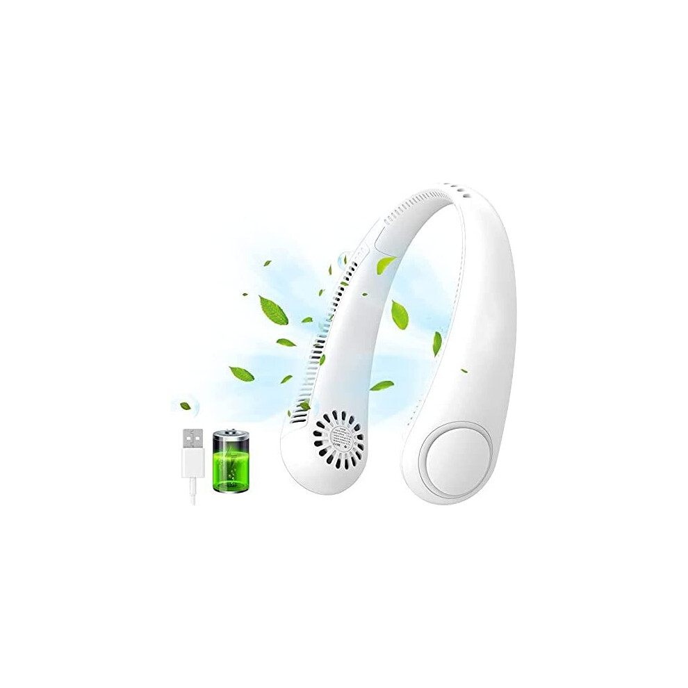 (white, One size) LINJOU Neck fan, rechargeable battery powered portable fan, hands-free personal fan, neck fan, wearable small fan, suitable for outd
