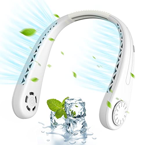 (white) Neck Fan Personal Fan, USB Fan Hands Free Rechargeable Neckband Fan for Hiking, Climbing, Summer Outdoor sports, 3 Levels