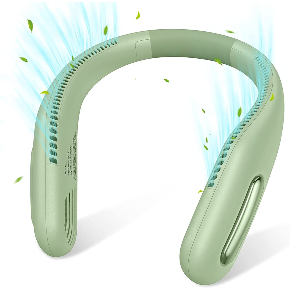 (Vintage Green) 5W USB Chargable Neck Fan Two Speeds Hands-free Eco-friendly Portable Mini Wearable Fans Neckband for Gift