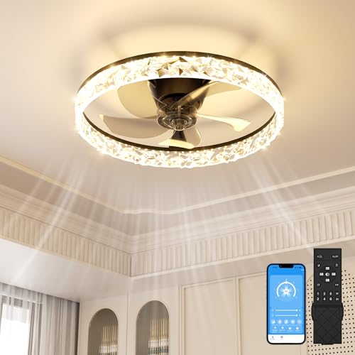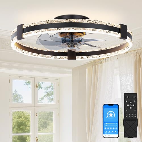 Finktonglan LED Ceiling Fans with Lights, Modern 50 cm Dimmable Bladeless Ceiling Fan 6 Speeds Bedroom Fan Ceiling Light Quiet Small Ceiling Fan Light for Living Room, Black