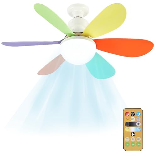 Screw in Ceiling Fan Light, E27 Ceiling Fans with Lights and Remote, Quiet Ceiling Fan Light Dimmable, LED Lamp Small Fans for Bedroom, Living Room Kitchen 3 Color Temperature, 3 Speeds, Timing