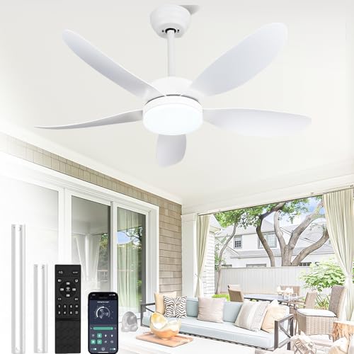 42 Inch Ceiling Fans with Lights and Remote Dimmable LED Ceiling Fan Light Modern Ceiling Fan with Reversible,Noiseless, 6 Speeds & Timer Ultra-Quiet for Bedroom Living Room Dining Room (White)