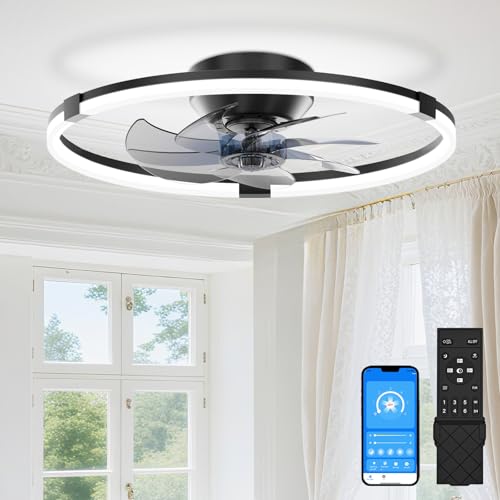 StarryEver Ceiling Fans with Lights and Remote, 46 cm Modern Smart Ceiling Fan, 6 Speeds and 3000K-6500K Dimmable LED Fan Light, Low Profile Ceiling Fan for Bedroom, Living Room, Dining Room, Black