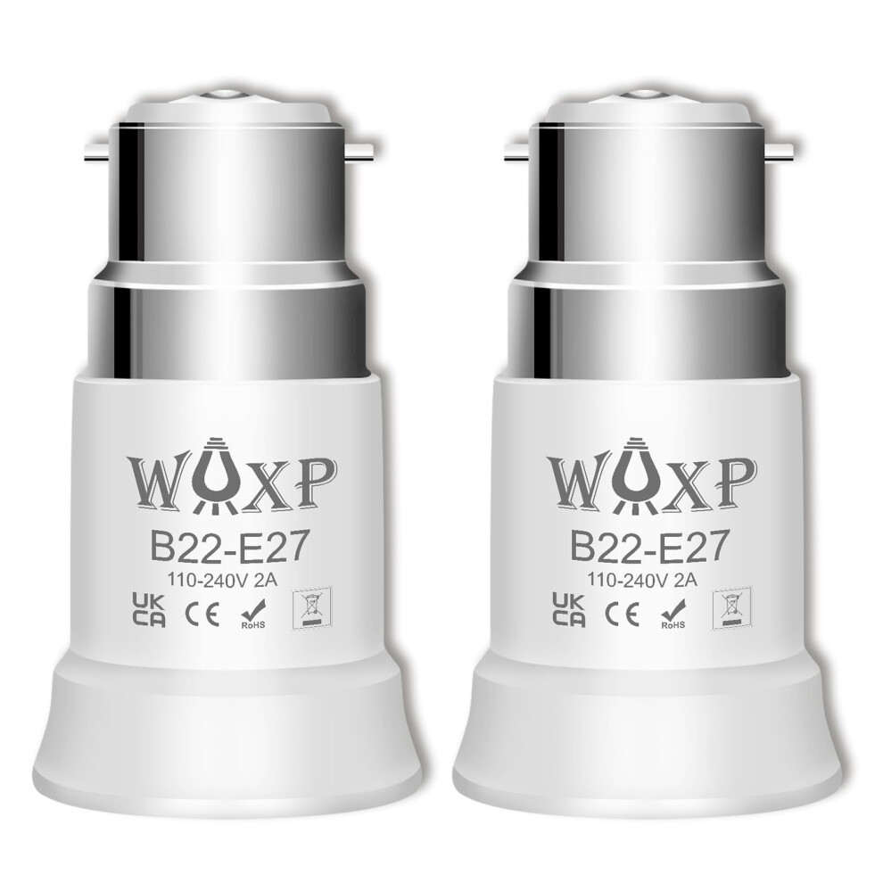 WAXP B22 to E27 Light Bulb Adapter, Bayonet to Screw Bulb Adaptor, Premium Ceiling Fan Light Bulb Bayonet Fitting, BC to ES Lamp Base Adapter for LED, Incandescent, CFL Bulbs, 2 Pack