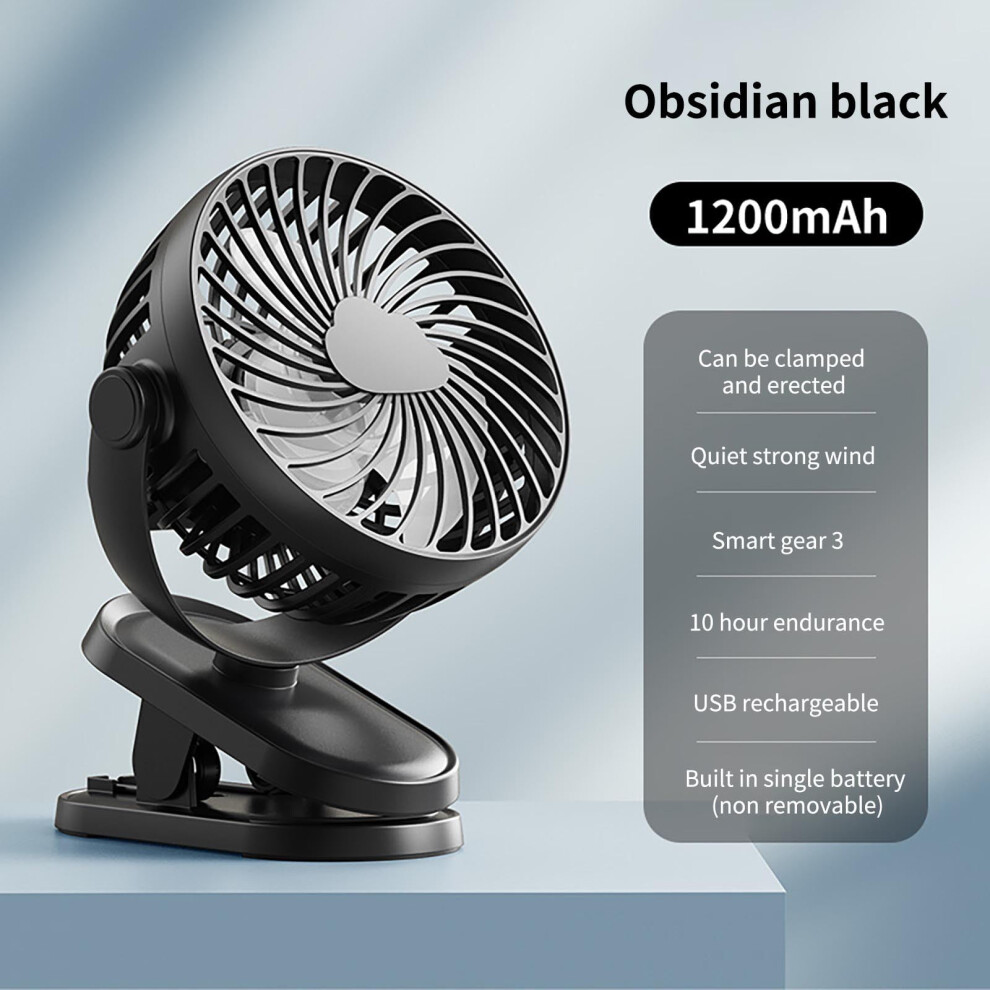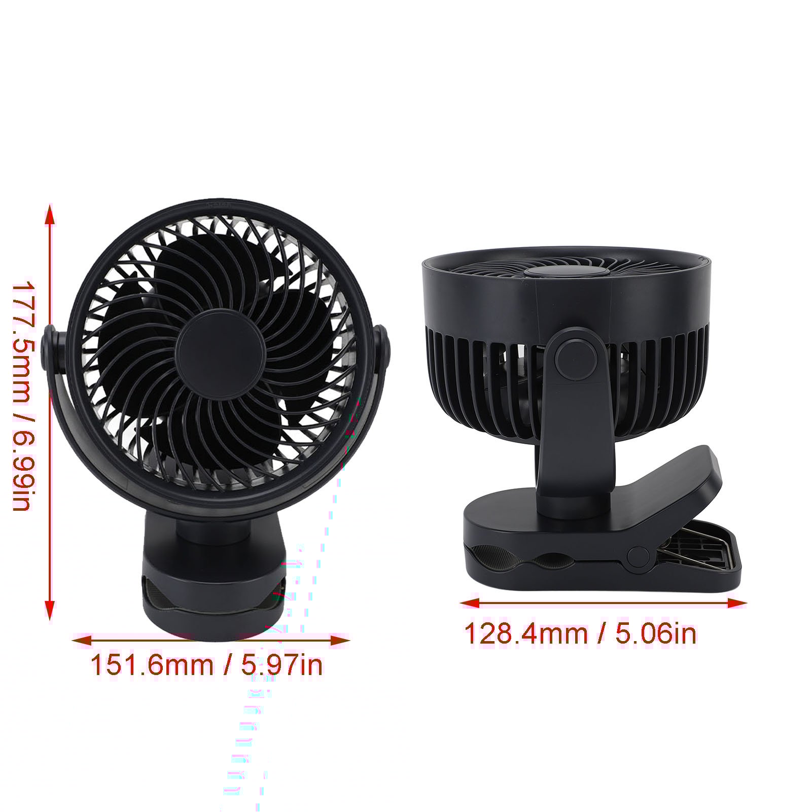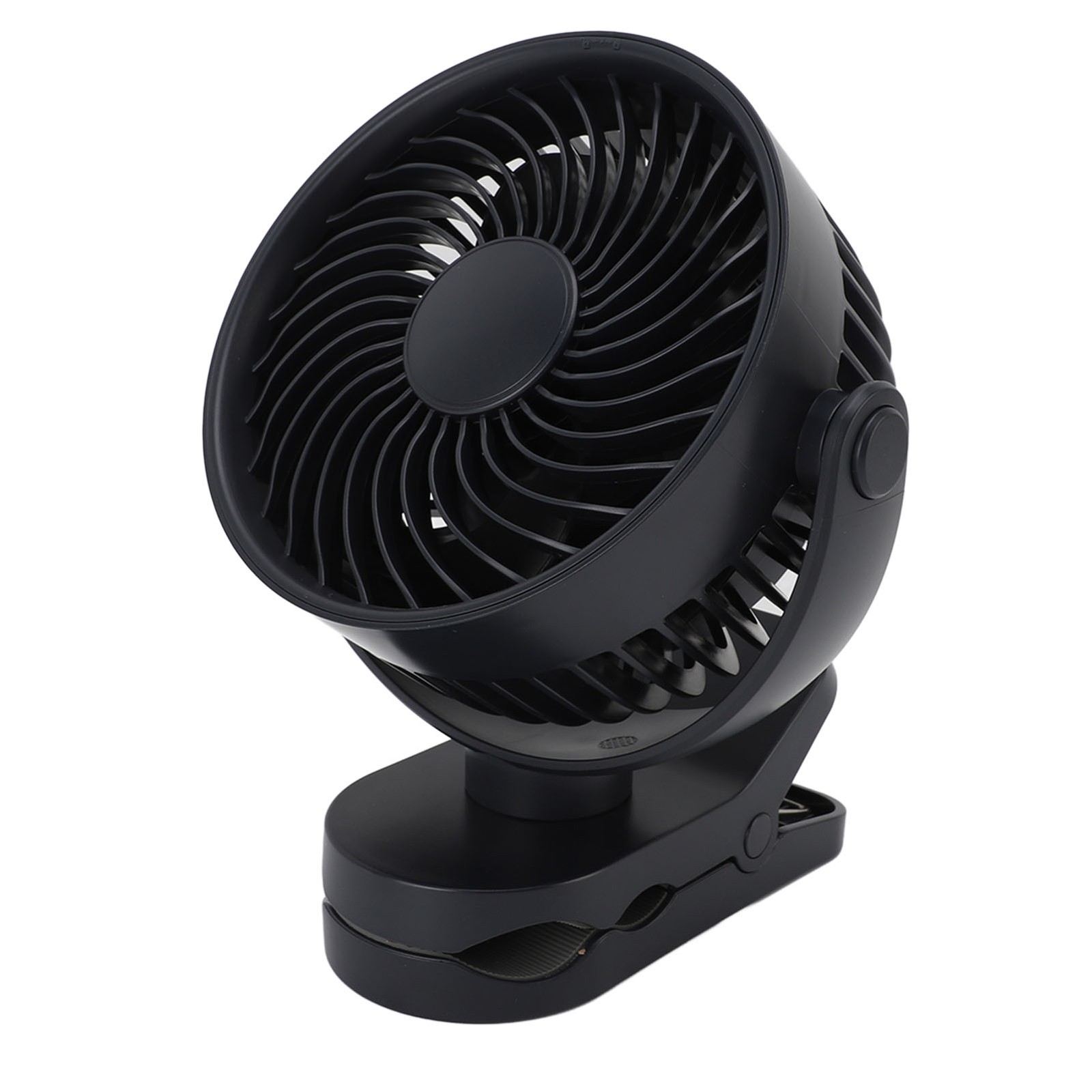 360 Rotatable Clip-On Fan, USB Rechargeable, Portable, Black