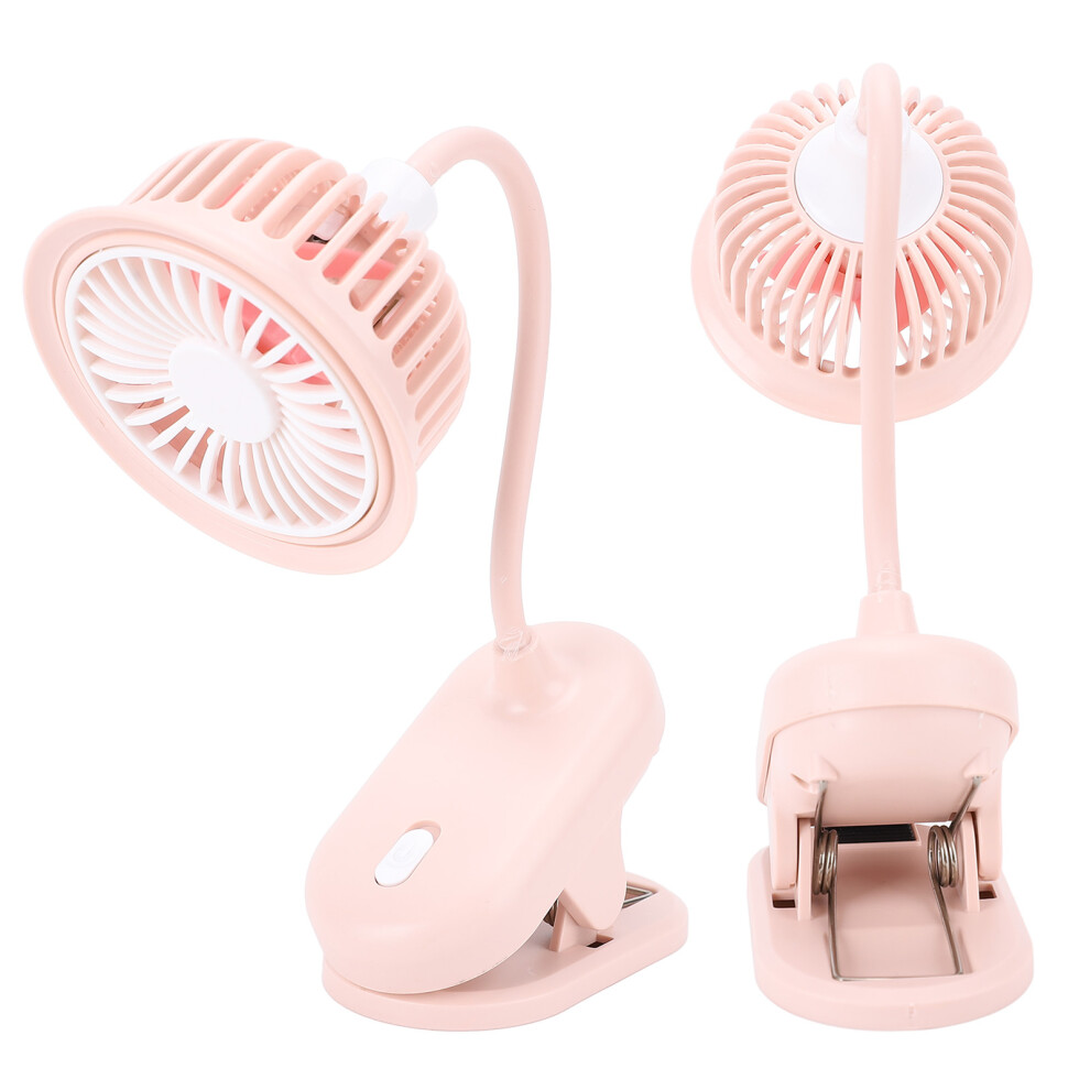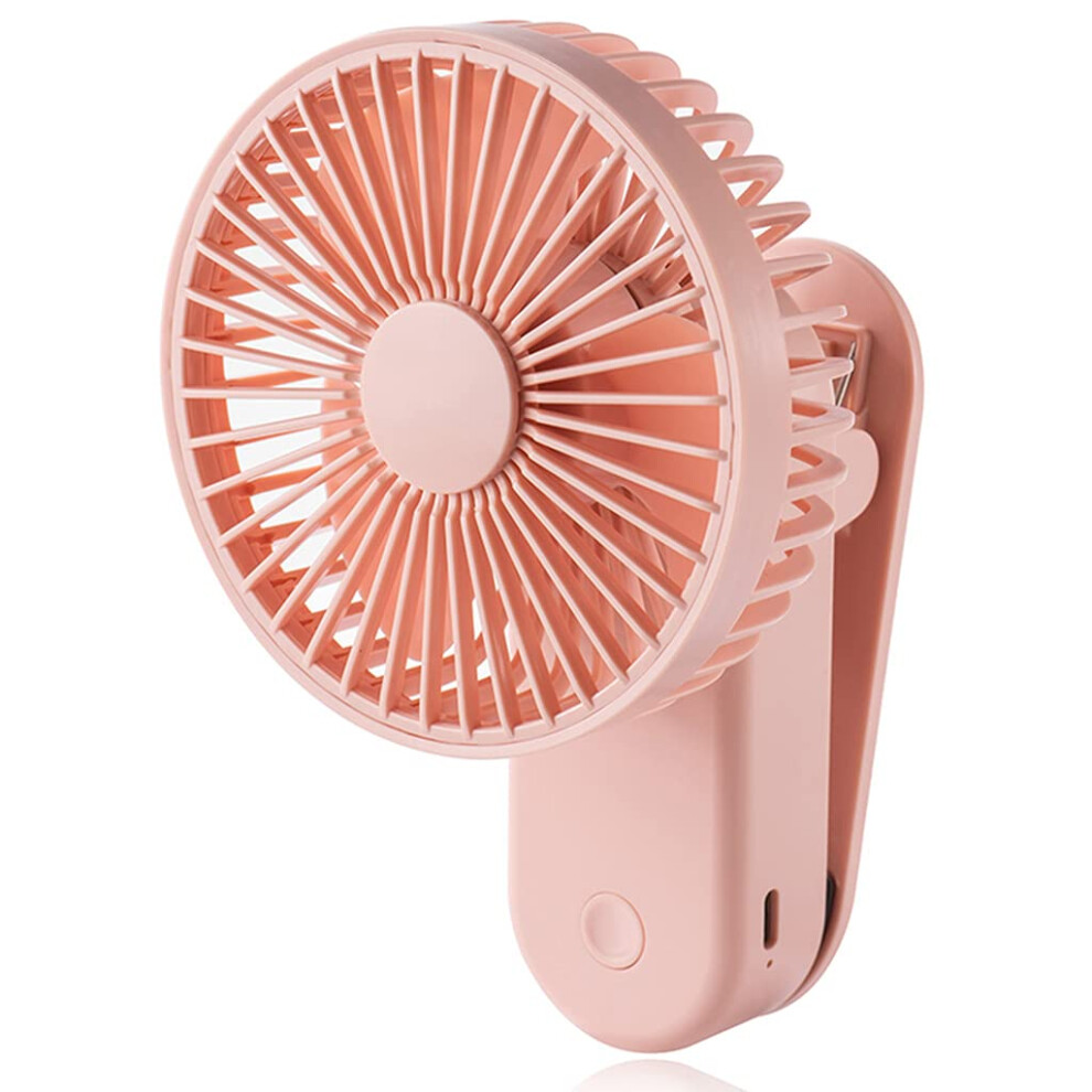 Pink Small Clip-On Fan, USB Rechargeable, 250mAh, Compact Desk Fan
