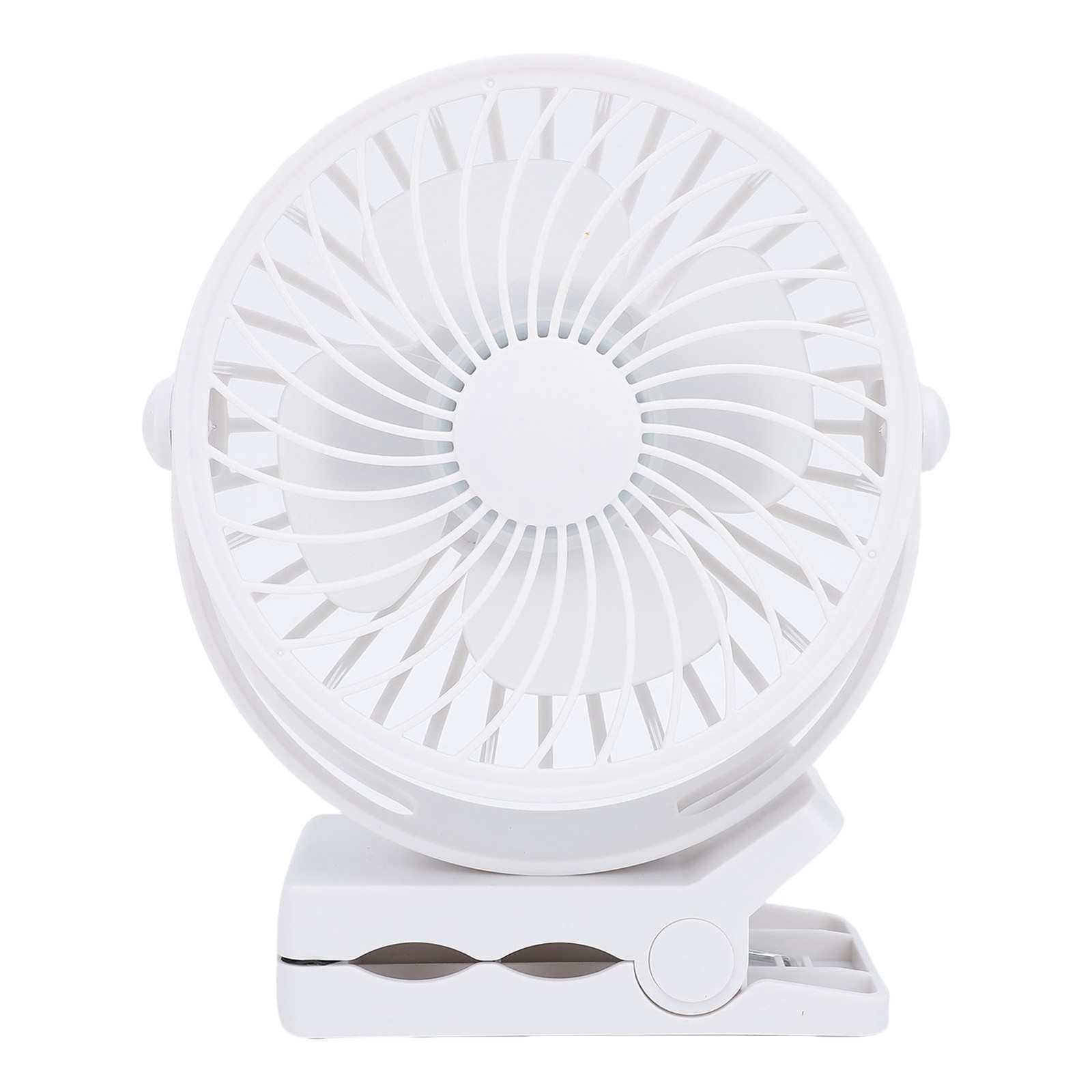 Clip On Fan USB Rechargeable 3 Speeds 800mAh White Small Desktop Fan