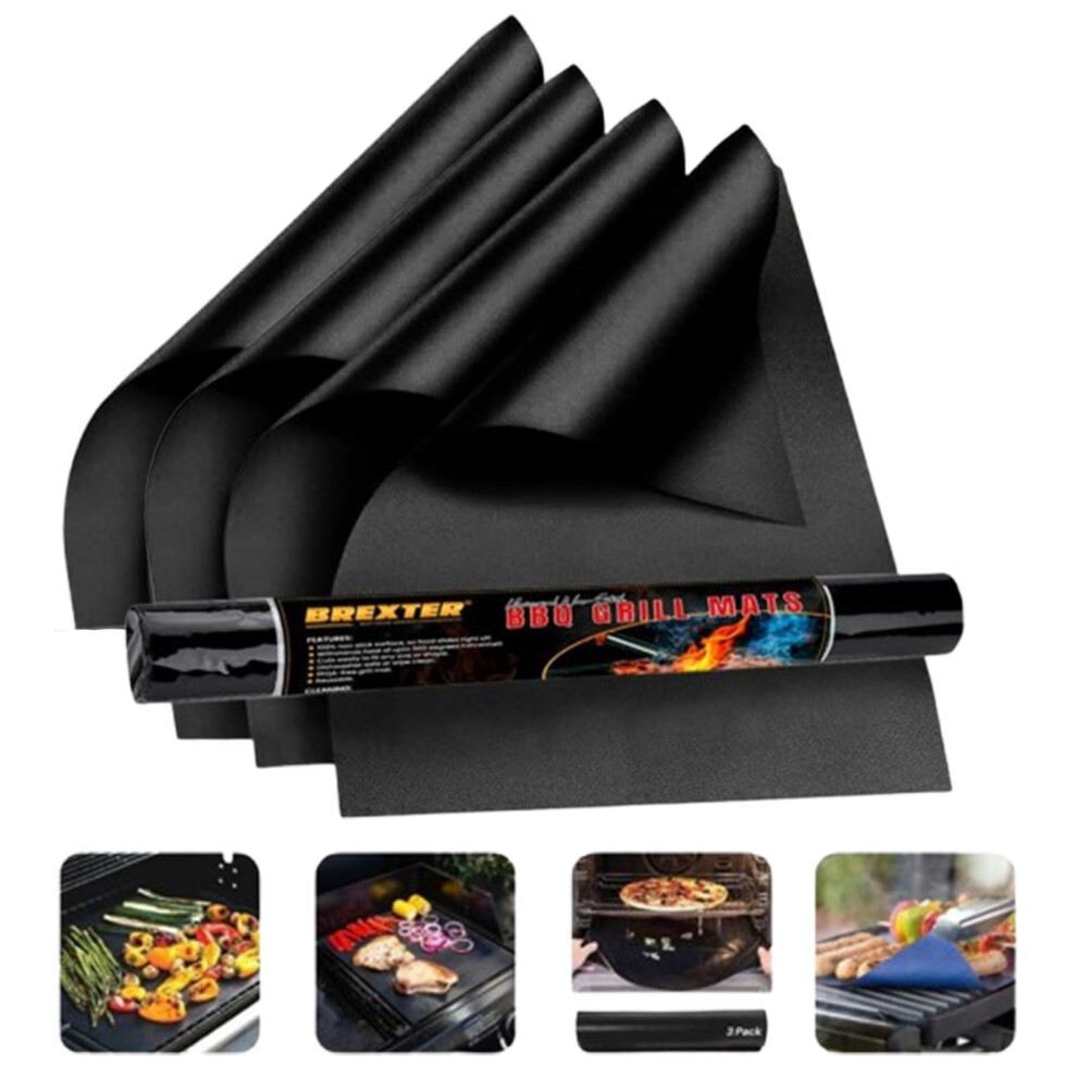 BREXTER Pack of 3 Oven Liner, 40cm x 50cm, 0.3mm Extra Thick Teflon Oven Liners for Fan Assisted Ovens, Mats for Gas Grill Reusable, BBQ Grill Mat