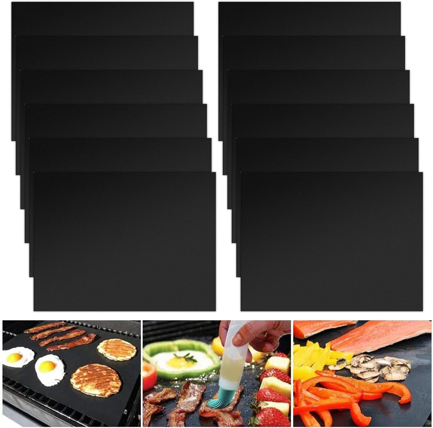 BEEWAY BBQ Mats, Universal Oven Liners for Bottom of Fan Assisted Ovens - Teflon, Reusable, Washable, Non Stick for Charcoal or Gas Grills - Bonus 12
