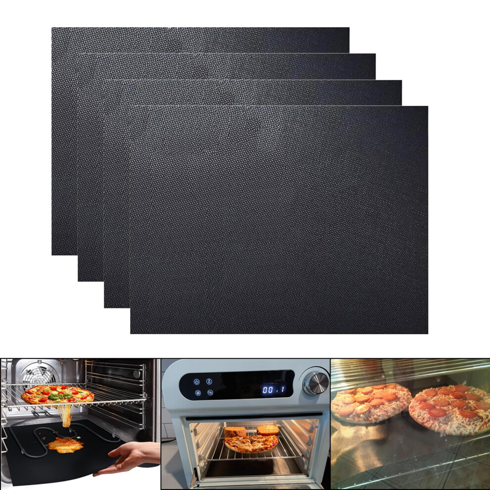 Pack of 4 Geebymol Oven Liner, 40cm x 33cm, Oven Liners for Fan Assisted Ovens, Non Stick BBQ Mats for Gas Grill, Baking Mat, Easy to Clean, Reusable, Convenient Baking, Protect Bottom of Oven