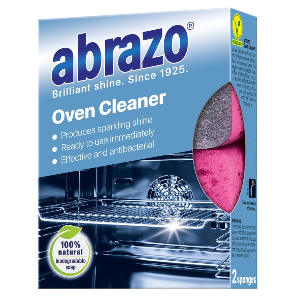 abrazo Oven Cleaner for fan assisted ovens, oven door, racks & trays | heavy duty degreaser with natural soap, no fumes non toxic | pack of 2 sponges