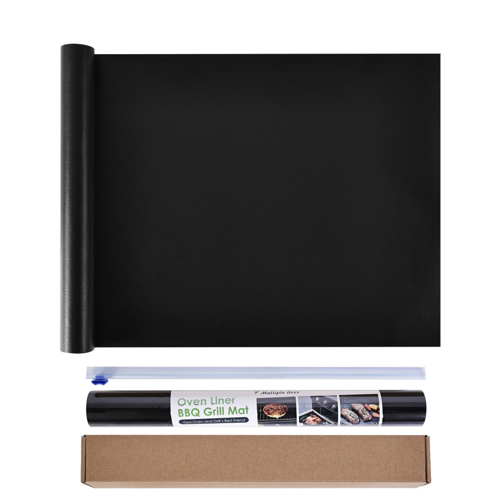 BEEWAY BBQ Mats, Universal Oven Liners for Bottom of Fan Assisted Ovens - Teflon, Reusable, Washable, Non Stick for Charcoal or Gas Grills - Bonus 12"