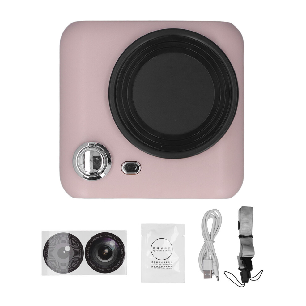 (Pink) Camera Shape USB Fan with Misting Turbofan Lanyard 1200mAh Pink