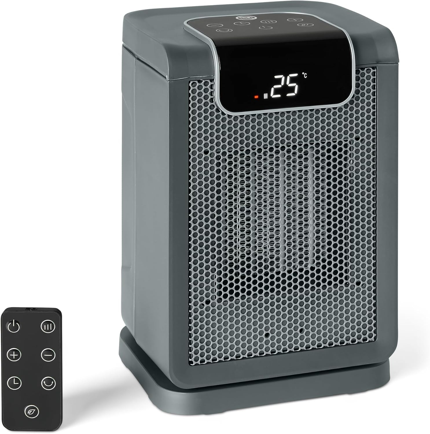 Amazon Basics Electric Heater, Portable Ceramic Fan Heater, 70° Oscillation, 1800W, 16inch, Grey