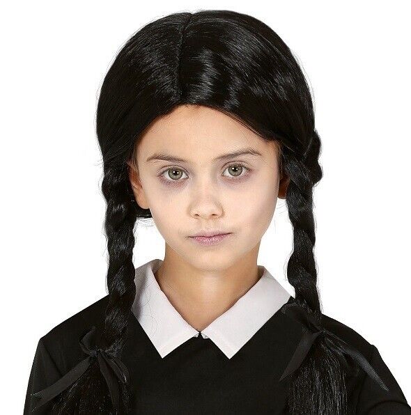 Childs Halloween Fancy Dress Gothic Schoolgirl Wig Black Wednesday Wig Smiffys