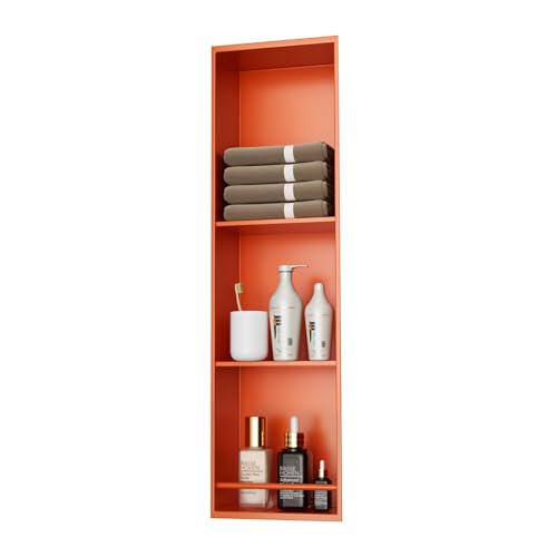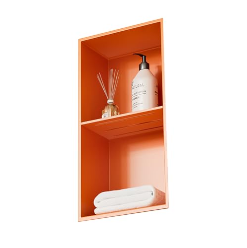 VITIWEDTY Tile Ready Bathroom Storage Shelf, Seamless Waterproof Wall Niche for Shampoo & Soap, No Tile Needed Rust-Proof Organizer (Orange)
