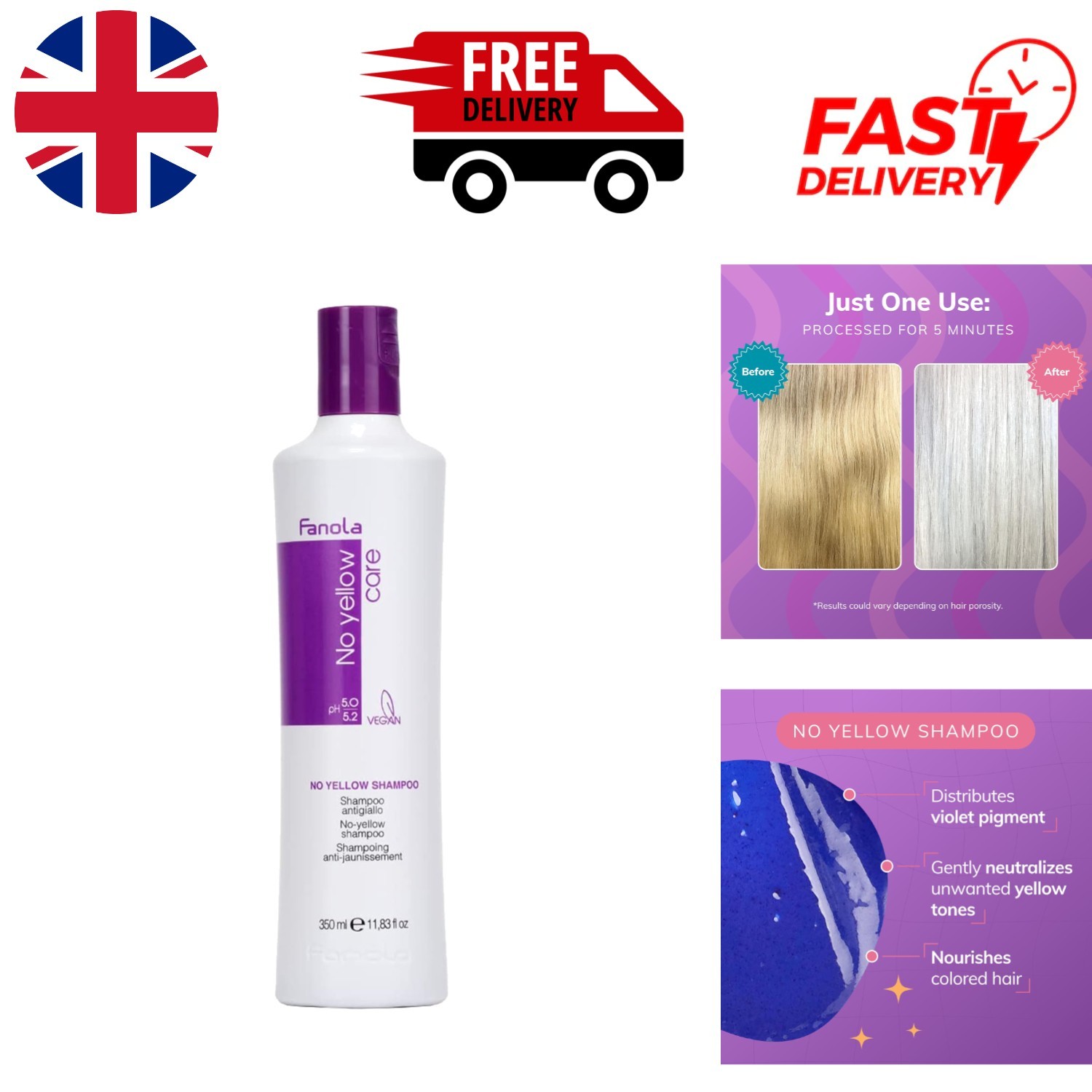 Fanola No Yellow Shampoo Purple Shampoo Toner For Blond Hair 100ml-350ml-1000ml