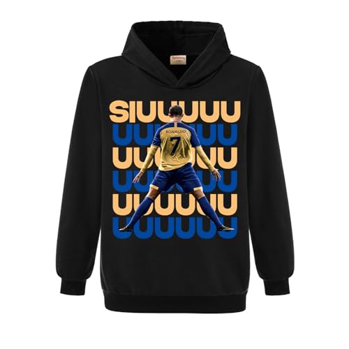 Xpialong Kids NO.7 Footbal Hoodie Youth Cotton Jumper Inspired Ronaldo Fans Football Hoodie (UK, Age, 7 Years, 8 Years, Regular, Black)