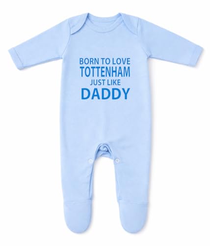 Cheekytots Spurs Baby Sleepsuit - 'Born To Love Spurs Just Like Daddy - Soft 100% Combed Cotton Football-Themed Baby Sleepsuit for Football Fans (UK, Age, 0 Months, Blue)