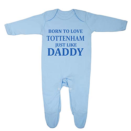 "Spurs Baby Sleepsuit - 'Born To Love Spurs Just Like Daddy - Soft 100% Combed Cotton Football-Themed Baby Sleepsuit for Football Fans" (UK, Age, 0 Months, Blue)