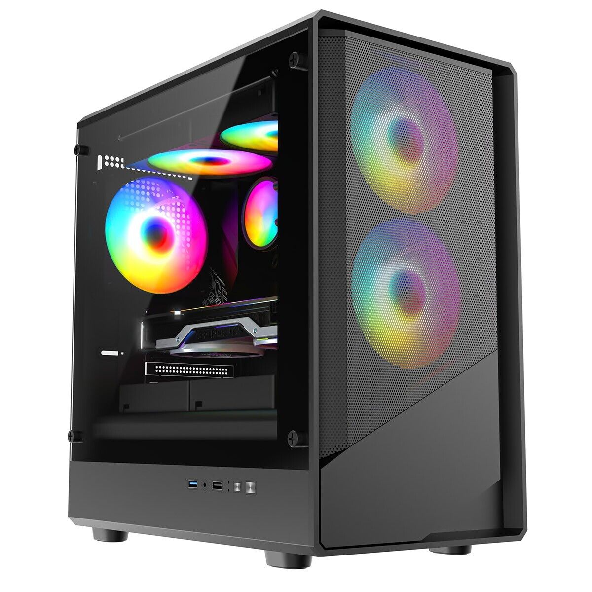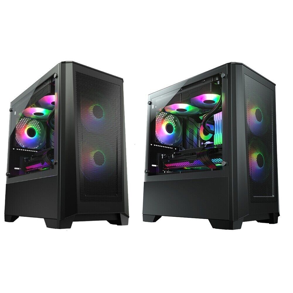 CIT Level 5 Mesh Micro ATX Gaming PC Case mATX Glass Panel 3x 120MM ARGB Fans UK