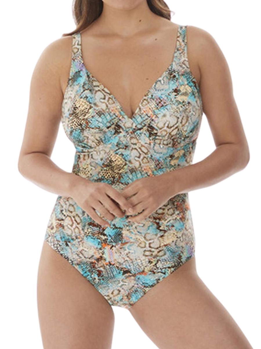34D Fantasie Manila Swimsuit Deep Plunge Underwired Iced Aqua Swimwear