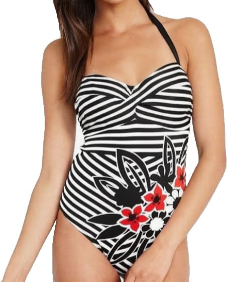Fantasie Genoa Black & White Swimsuit 32D Strapless Halterneck Swimming Costume