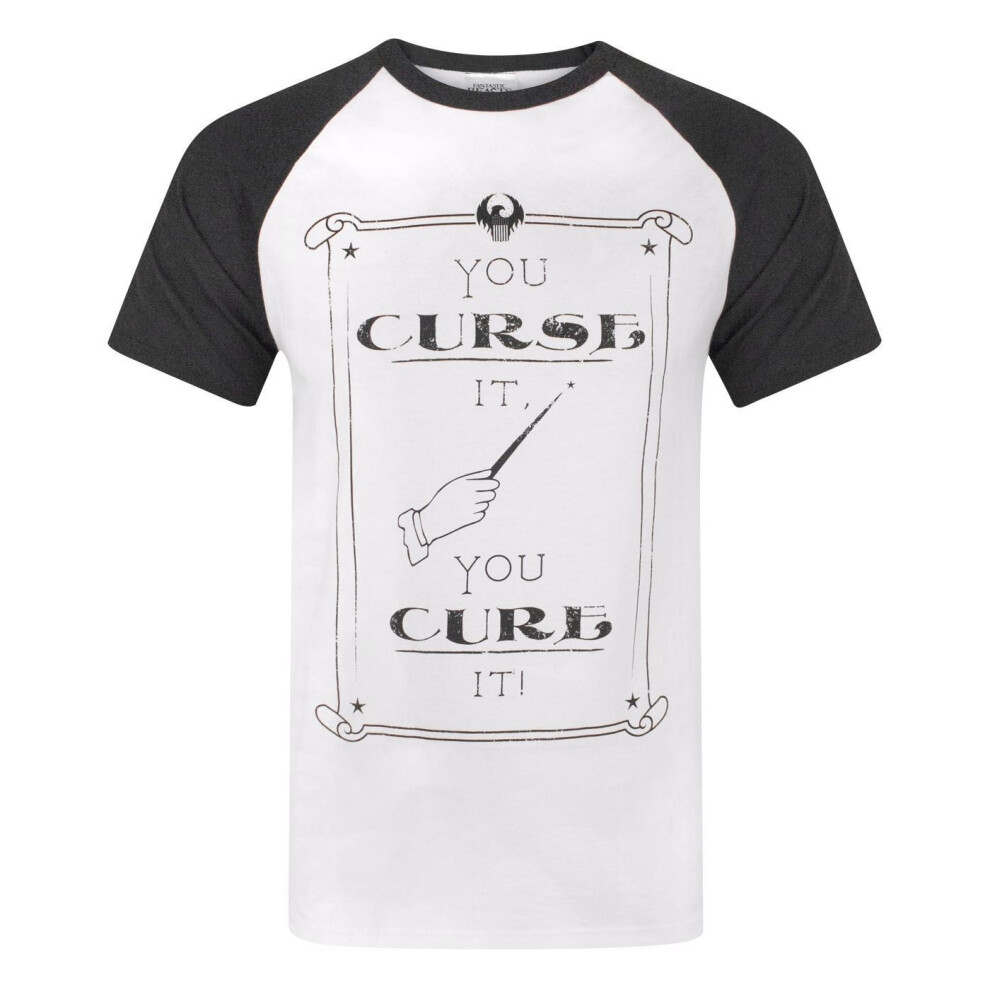 (S, Multicoloured) Fantastic Beasts And Where To Find Them Mens Curse It Cure It Raglan T-Shirt