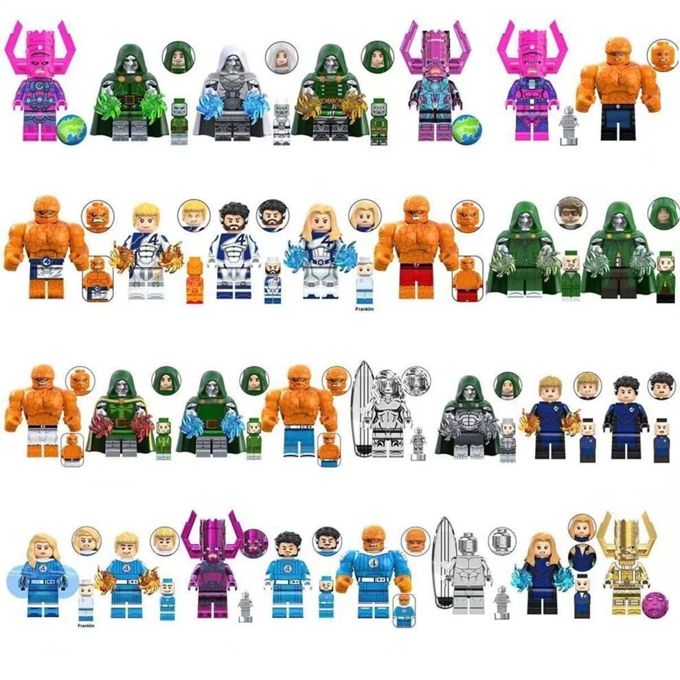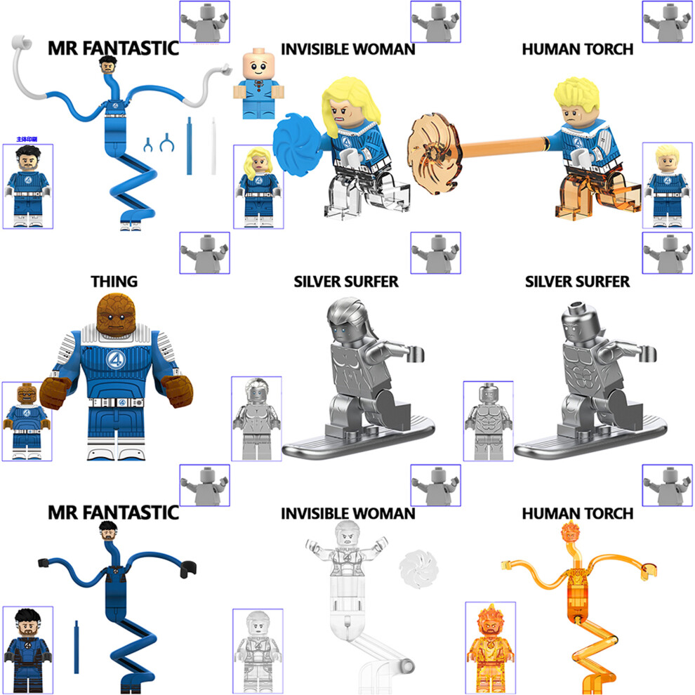 (6PCS Fantastic Four) 45PCS Fantastic Four Human Torch Stone Man Minifigures Building Blocks Fit Lego Kid Toys