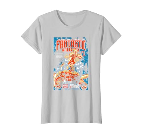 Fantastic Four Comic Cover T-Shirt, Women, Silver Grey, Medium