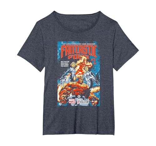 Fantastic Four Comic Cover T-Shirt, Women's Plus, Heather Blue, 5X