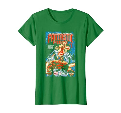 Fantastic Four Comic Cover T-Shirt, Women, Kelly Green, X-Small