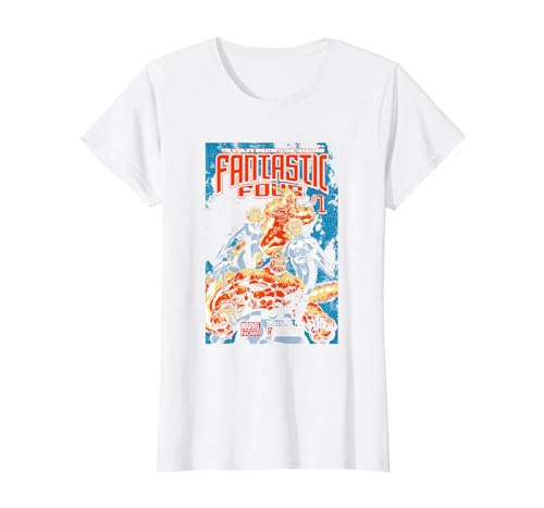 Fantastic Four Comic Cover T-Shirt, Women, White, Medium