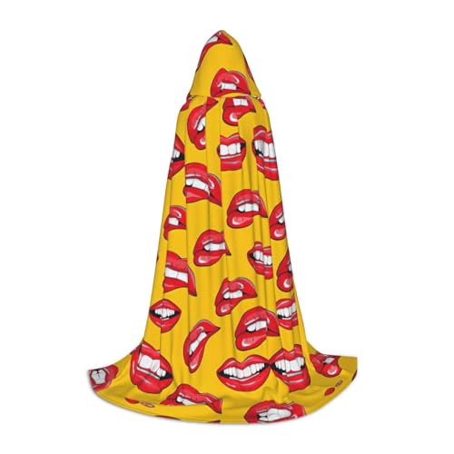 SDEGTHO Women Smiling And Biting Her Red Lips Hooded Cape Cloak For Teen Cosplay Costume Renaissance Fair Gothic Fantasy Medieval Robe Outfit