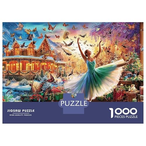 Ballerina Fantasy 1000 Pieces Eco-friendly Material Ballerina with Butterflies Puzzles for Seniors Easy to Assemble Gift for Her Zero-gap Fit 70x50cm/1000pcs