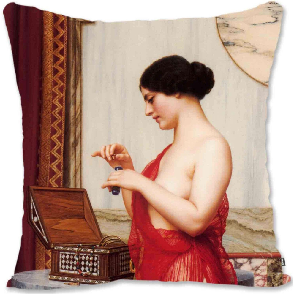 Decorative Throw Pillow Case Cover Pre-Raphaelite Woman Portrait Art - Godward - Far Away Thoughts JG-The New Perfume Jg