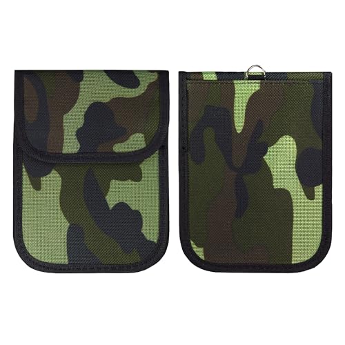 StandardAutoPart Faraday Bag for Car Keys – Anti-Theft Key Fob Pouch with RFID Signal Blocker, Protects Against Car Hacking & Relay Attacks (Jungle Camo (Pack of 2))