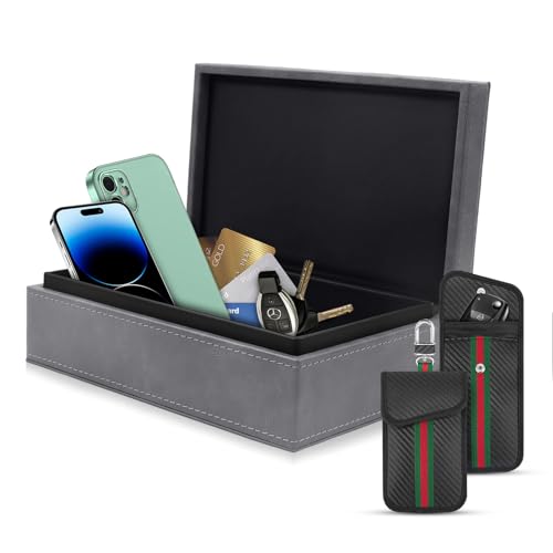 Crozgan Faraday Box and Pouch 2 Piece Set Keyless Car Key Signal Blocker Anti-Theft Signal Shielding Box for Storing Keys and Protecting Belongings