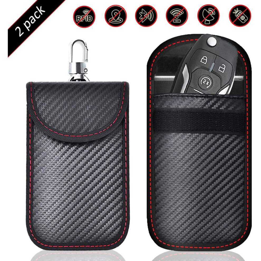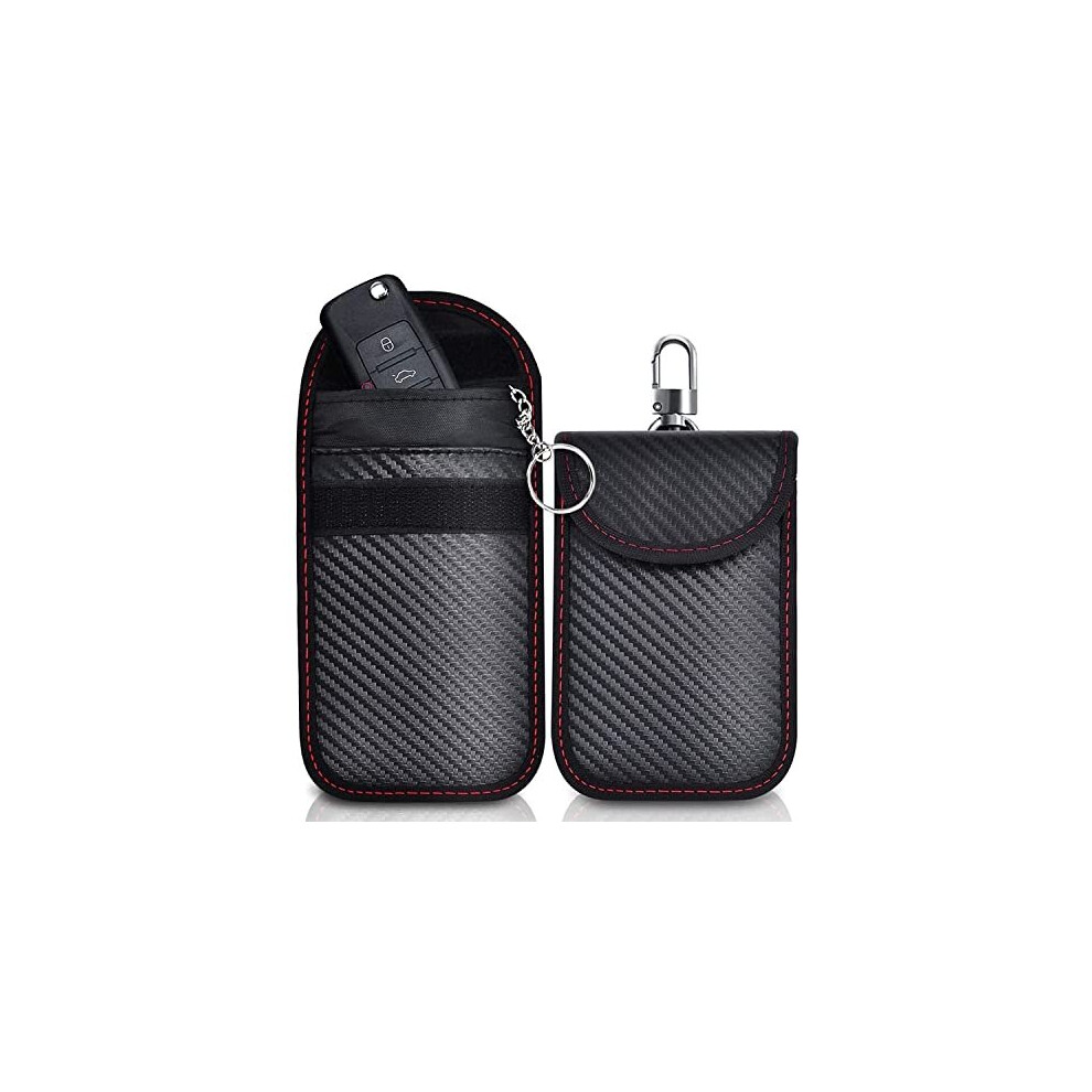 2 Pack Universal Faraday Bags: Anti-Theft Pouches For Car Key Fobs, Advanced Signal Blocking Technology, Carbon Fibre Surface, Sleek And Elegant Desig
