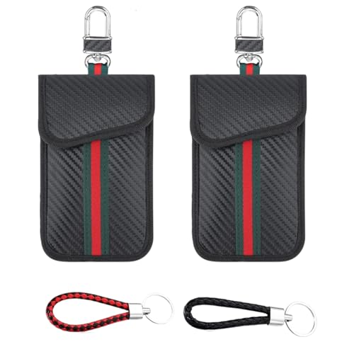 KIKAWORD 2 PCS Faraday Pouch for Car Keys, Keyless Car Key Signal Blocker Pouch, RFID Key Pouches Signal Blocking, Anti-Theft Carbon Fibre Design, Blocks Relay Attacks Car Hacking, Black