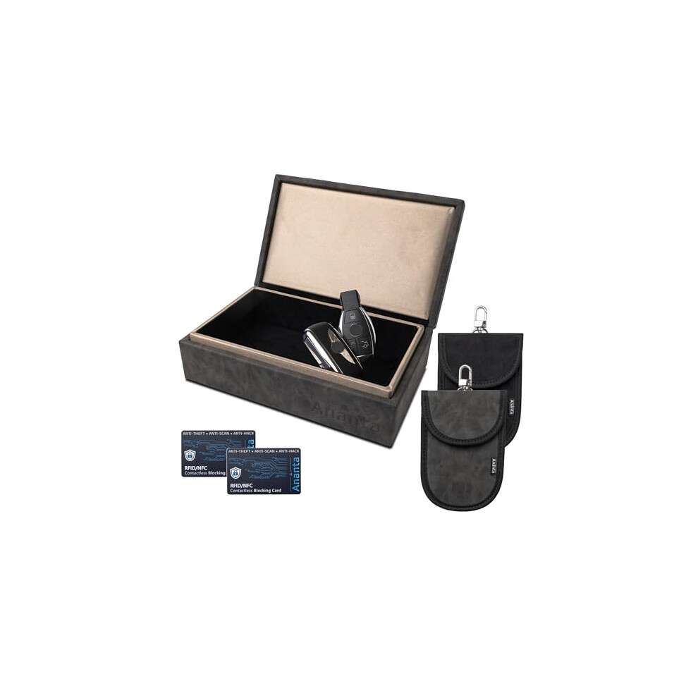 Ananta Faraday Box for Car Keys â Luxury RFID Signal Blocking Key Box, Magnetic Close, Twin Faraday Pouches & RFID Cards (Grey)