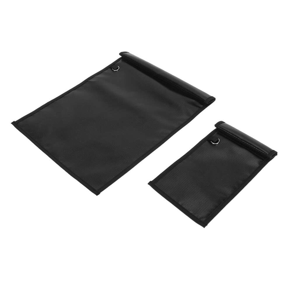 VILLFUL 2pcs Fireproof Faraday Bags Fiberglass Document Pouches with Privacy Protection for Tablets and Cash, Black Fireproof Document Bags Suitable for Business and Outdoor Use