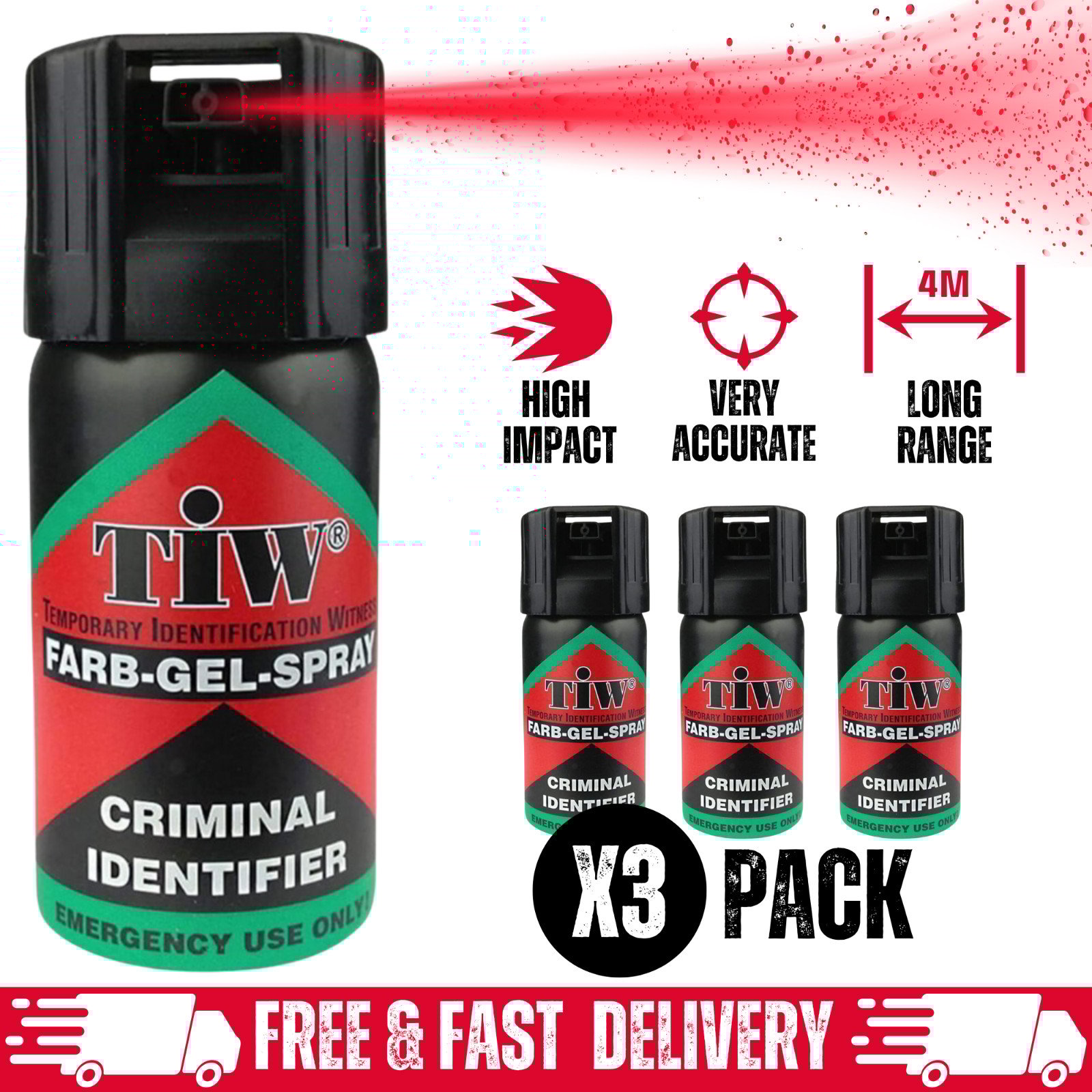 3 x Farb-Gel 40mL Personal Protection Spray Criminal ID Dye Marker UK Legal