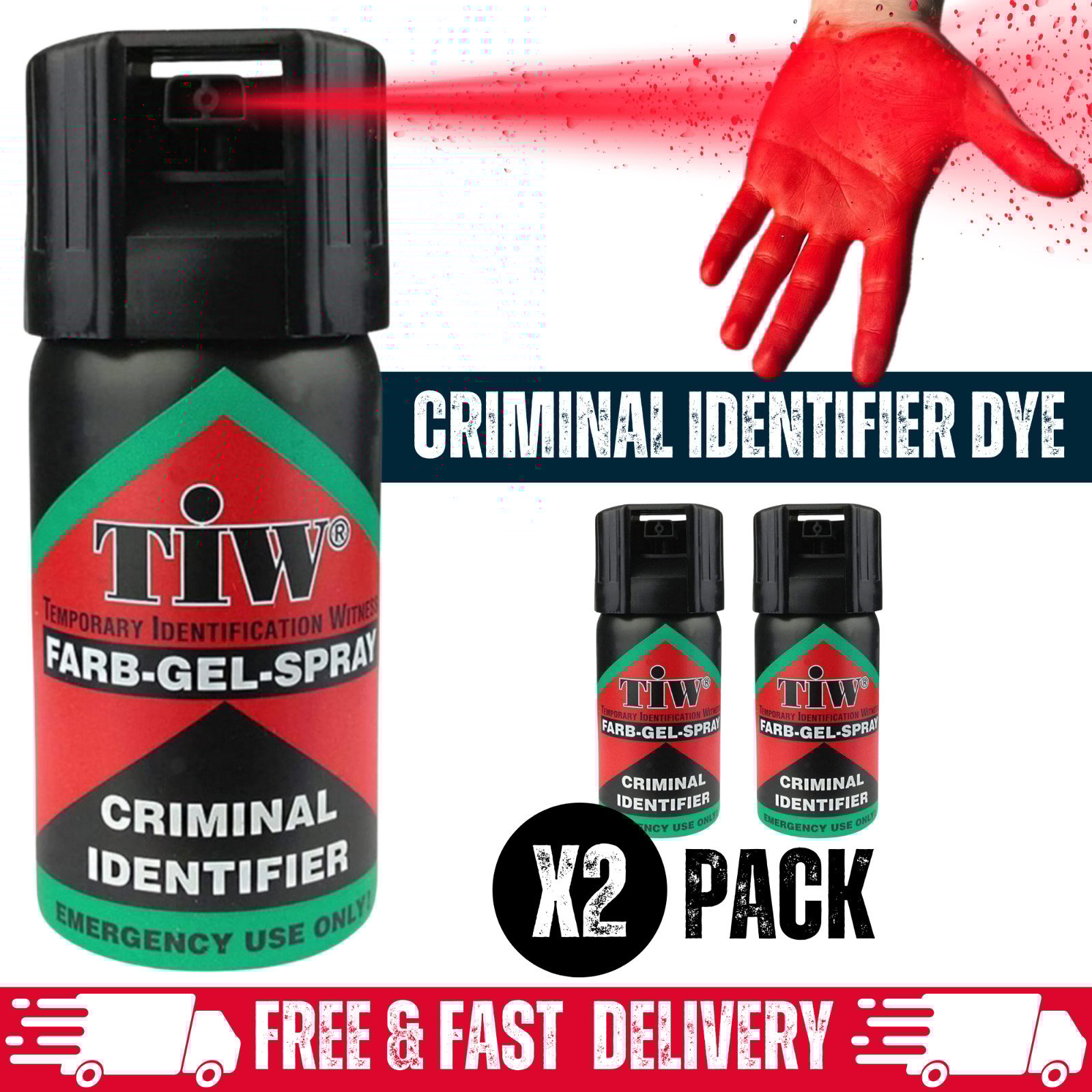 2 x Farb-Gel 40mL Personal Protection Spray Criminal ID Dye Marker UK Legal