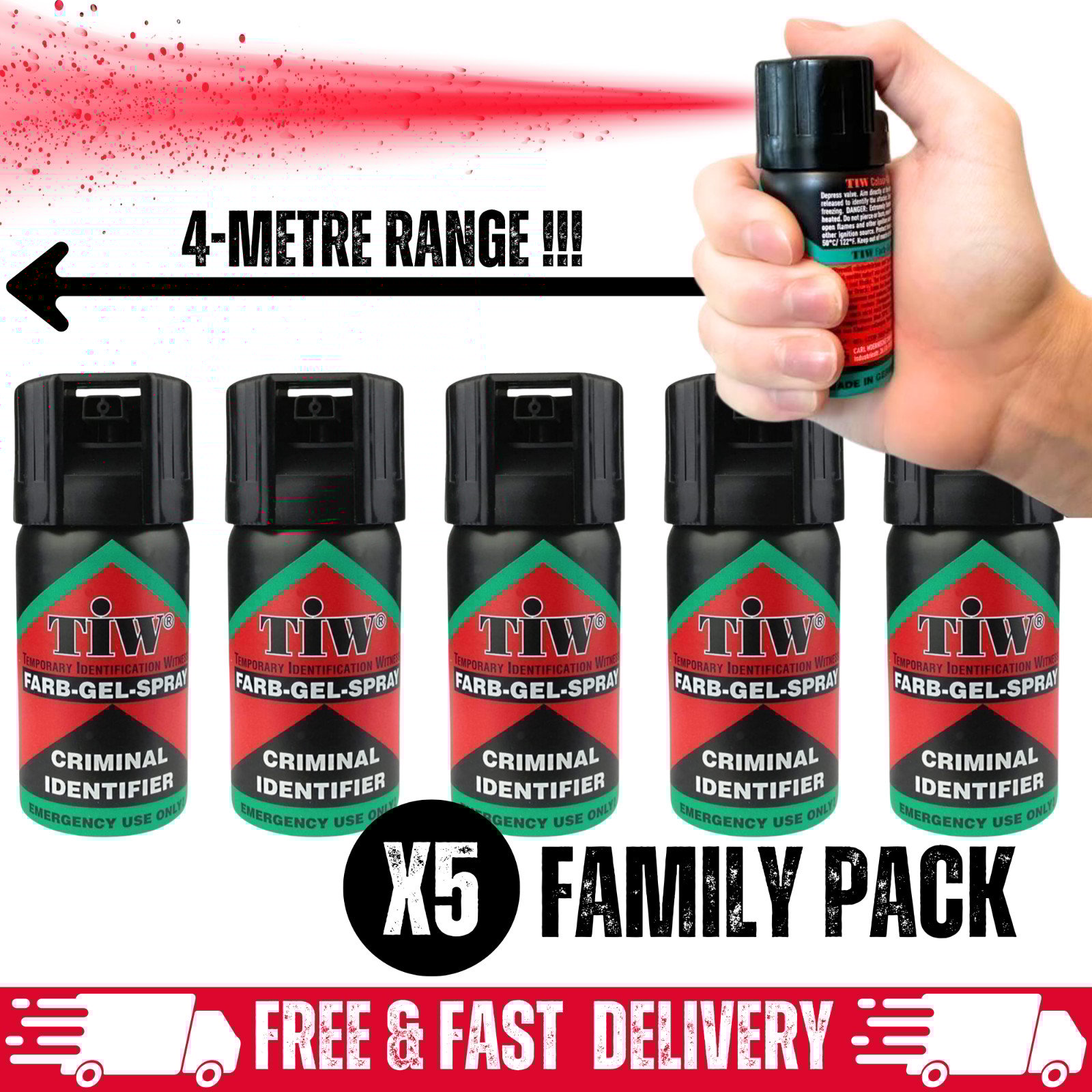 FARB-GEL Self-Defence Spray and Criminal Identifier. (5 UNIT Family Pack). UK Po